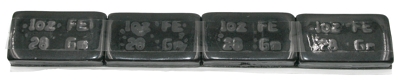 1 oz. Black Steel Adhesive Wheel Weight with Tape on Top. Packaged 4 ounces per strip, 18 strips per box.