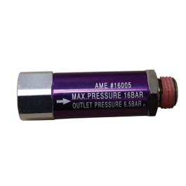 AME 16005 Inline Air Regulator regulates inlet pressure to 94 PSI to prevent air bypass. 1/4" Male to 1/4" Female Air Reducer. Max Air Inlet Pressure of (16 Bar) 230 PSI. Outlet Pressure: (6.5 Bar) 94 PSI.