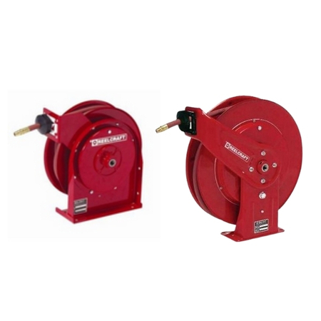 Features a compact design allowing reel to fit into tight locations and corrosion resistant powder coated paint. Extended service life due to permanetly lubricated bearings and swivels. Versatile applications include easy mounts on wall, floor, ceiling or truck. Air / Water hose included.