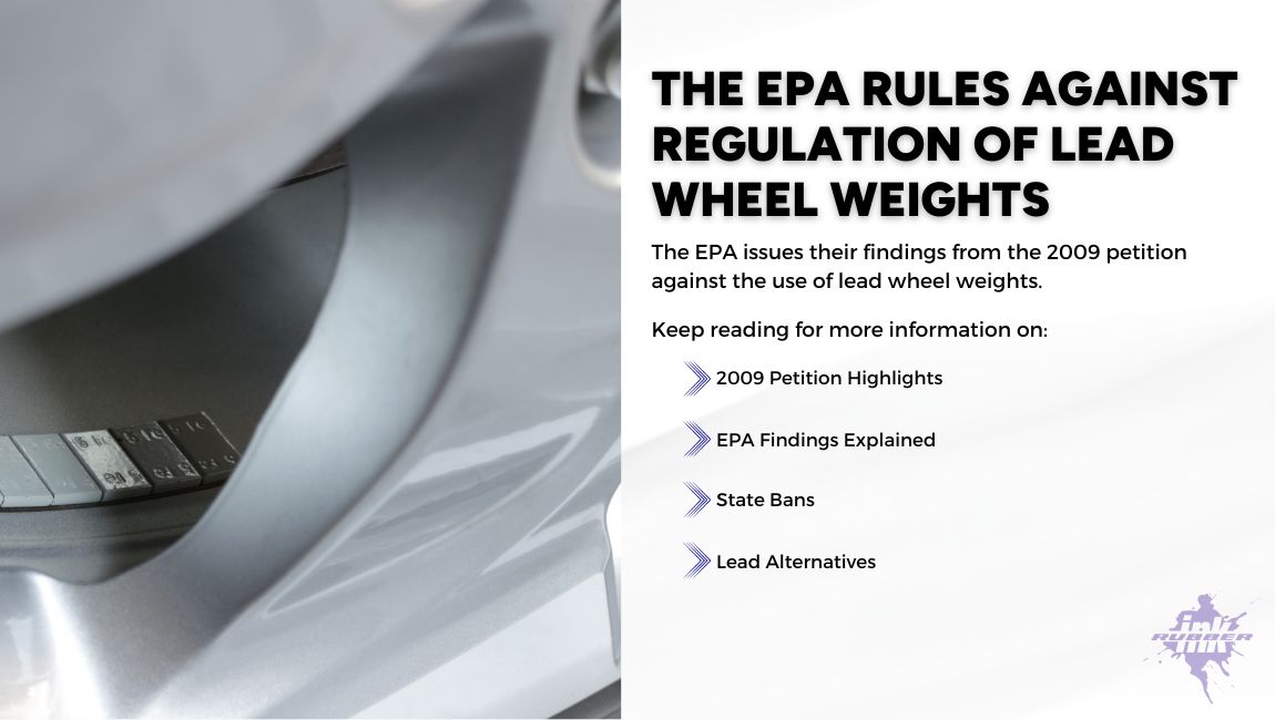 The petition highlighted concerns of the "significant threat" of lead exposure to children caused by the use of lead wheel weights on vehicles. The concern outlined that lead wheel weights that separate from vehicle wheels or are not disposed of properly may be picked up by children or worn down into fine particles by traffic. Those particles can then be released into the air, migrate to nearby communities or homes, and increase lead exposure to children through ingestion of these particles in the soil or dust.