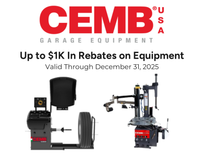 Get rebate offers on Cemb Tire Changers, Wheel Balancers, and More now through December 31.