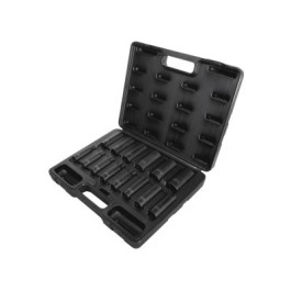 Ascot 1/2" Drive 14 piece Standard Deep Metric Impact Socket Set. Contains the following sizes: 10mm, 11mm, 12mm, 13mm, 14mm, 15mm, 16mm, 17mm, 18mm, 19mm, 21mm, 22mm, 26mm, 27mm.