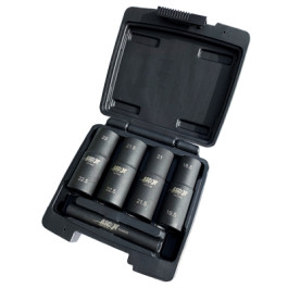 Ascot 167-12051 1/2" Drive Half Size Flip Socket Set includes the following sizes: 18.5mm x 19.5mm, 21mm x 21.5mm, 21.5mm x 22.5mm, 22mm x 22.5mm, and extractor punch. Made of durable chromoly steel and coated with rust and corrosion resistant black oxide finish. Sizes are laser etched on each socket. Comes packaged in a blow molded case.