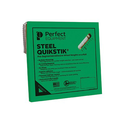 Perfect Equipment 1/4 oz Low Profile Steel Adhesive Wheel Weight (20LB Roll) is made for use on most wheel types where a clip-on wheel weight is not available or not preferred. Features the exclusive isosceles trapezoid segment design, allowing the weight to easily contour to the shape of the rim, and the patented QuikTab, which makes separating the protective backing from the adhesive strip on the weight effortless. The protective backing is wider than the weight, allowing for an easier and quicker installation. 1,280 pieces per box. Ascot Part #484-21624.