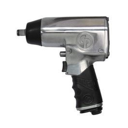 Chicago Pneumatic CP734H Extra Heavy Duty 1/2" Impact Gun features a differential regulator that allows the operator to match the required power to the job, an improved oil bath DYNA-PACT clutch that delivers higher performance and extended durability, and a handle exhaust that directs air away from the workpiece and operator. Applicatons include overall automotive service, body shop, farm, light truck work, etc. Ultimate Torque: 425 ft-lbs. Ascot Part #153-00734. Photo: Chicago Pneumatic.
