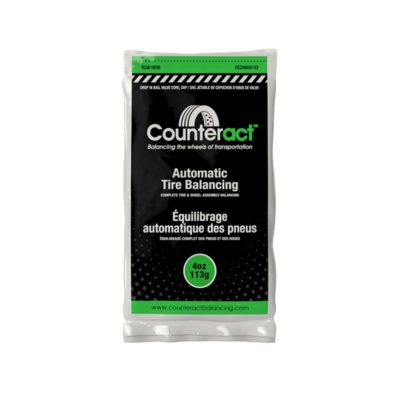 Counteract Balancing Beads - 4 oz Thrown-In Bag. Counteract's clean, trouble-free balancing micro-beads provide continuous self-adjusting balance with no clumping. Just open and the outside package and throw the inside bag into the tire. After using an air blaster to set the tire on the rim, the pressure inside the tire will collapse the bag containing the balancing beads or the package will break open soon after driving. Available in application sizes from passenger vehicles to heavy trucks. Ascot Part #451-00204.