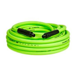 Flexzilla 1/2" x 50' Air Hose Assembly with 1/2" MNPT. Flexzilla is a revolutionary hose featuring a flexible hybrid polymer material that redefines flexibility. This engineered polymer blend material permits use in environments where general purpose PVC and rubber hose may become too stiff. It won't work against you during operation and coils easily after use. Flexzilla offers extreme all-weather flexibility, even in subzero conditions, and is ideal in both hot and cold environments where tight radius bends are needed. Temp Range: -40 Deg to 140 Deg F. Max working pressure at 70 Deg F: 300 PSI. 2 Year warranty from manufacture defects (not covered by misuse or abuse).