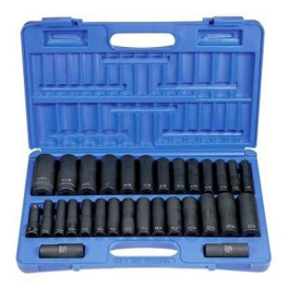 GP 1/2" Drive 30 Pc. SAE & Metric Deep Impact Socket Set / Set Contains: SAE Deep Length 7/16" through 1-1/4", Metric Deep Length 10mm through 27mm, 3/4" x 13/16" Flip Socket, 19mm x 21mm Flip Socket and 3" Extension.
