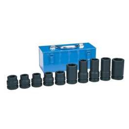 GP 1" Drive 10 Pc. Truck Wheel Service Impact Socket Set / Set Contains: 13/16" Square, 7/8" Standard, 15/16" Standard, 1" Standard, 1-3/16" Standard, 33mm Deep, 1-1/16" Thin Wall Deep, 1-1/8" Thin Wall Deep, 1-1/4" Thin Wall Deep and 1-1/2" Thin Wall Deep Impact Sockets.