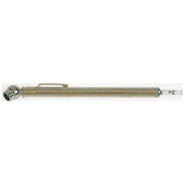 Haltec Pencil Tire Gauge, with a 10-75 PSI / 70-500 kPa calibration and 1 PSI increments. For service on radial and spare tires. Features a chrome finish.