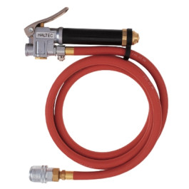 Haltec Large Bore Inflation Gauge with in-line gauge. Equipped with H4660A chuck and a 6' hose. Gauge is calibrated 10-120 PSI in 2 lb increments. Ascot Part #477-00409.
