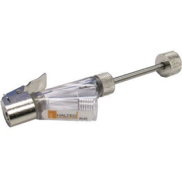 Haltec Core Removal and Inflation Tire Chuck reduces inflation time by 50%. Retractable core housing allows safe removal and replacement of valve core. Features a clip-on style chuck and made of durable steel, brass and plastic. 1/4" Female NPT allows easy attachment to air hose. Ideal for nitrogen purging and inflation.
