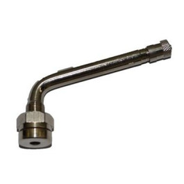 Haltec 545E Alcoa Truck Tubeless Tire Valves designed for use with 9.7mm (.382") rim hole. The Rubber o-ring forms a seal when the valve is clamped to rim by tightening the hex nut. Designed specifically for use in aluminum wheels. Length from grommet to bend of valve is 0.98". Length from bend to the top of valve is 2.60". Bend is 75°. Ascot Part #463-15454.