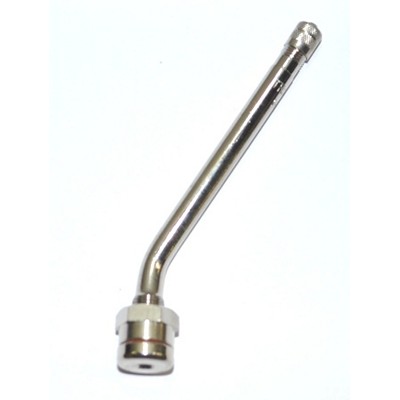 Haltec 546 Alcoa Truck Tubeless Tire Valves designed for use with 9.7mm (.382") rim hole. The Rubber o-ring forms a seal when the valve is clamped to rim by tightening the hex nut. Designed specifically for use in aluminum wheels. Length from grommet to bend of valve is 0.98". Length from bend to the top of valve is 3.35". Bend is 36°.