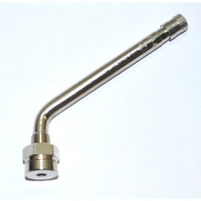 Haltec 546D Alcoa Truck Tubeless Tire Valves designed for use with 9.7mm (.382") rim hole. The Rubber o-ring forms a seal when the valve is clamped to rim by tightening the hex nut. Designed specifically for use in aluminum wheels. Length from grommet to bend of valve is 0.98". Length from bend to the top of valve is 3.35". Bend is 60°. Ascot Part #463-05464.