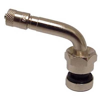 Haltec 553E Alcoa Truck Valve with the following dimensions: 75° bend, 0.98 length from grommet to bend, 1.38" length from bend to the top of valve.