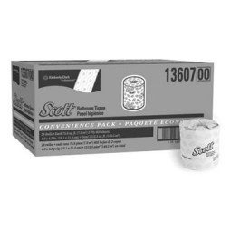 Kimberly-Clark Scott® Standard Roll Bathroom Tissue - White (4.5" x 4.4" / 11.18cm x 11.43cm. Quantity per pack: 500. Also known as Toilet Paper. Twenty packs per case (1 unit = 1 case).