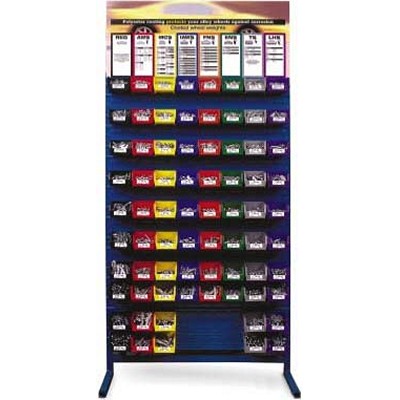 This is an empty version of the 2000KIT, the ultimate kit for the professional tire dealer. This kit includes 74 pre-labeled, color-coded bins which are supported on a free standing floor display with descriptive header. This kit comes with no wheel weights.