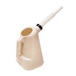 Lisle 6 Qt. Oil Disp with White Spout. It's translucent (see through) polyethylene material enables the user to read the liquid level on the container. Marked in both quarts and liters. The flexible 8" pouring spout enables easy transfer of liquid.