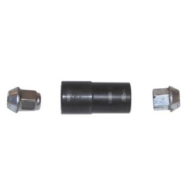 Lock Technology 1/2" Drive Dual Sided Socket Removal Tool removes missing and distorted chrome lugnut caps. The 19.5mm side fits distorted 19mm caps while the 18.5mm side fits rusted lugnuts missing chrome cover.