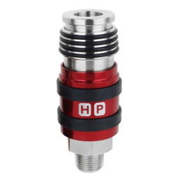 Milton 1759 3/8" Body 3/8" Male NPT Safety Exhaust Coupler is designed to disconnect air connections in a safe manner. With disconnection utilizing a protective sleeve and a controlled release of air, users can quickly change out tools without the risk of hose whip that can cause injuries to the operator and damages to surrounding tools and products.
