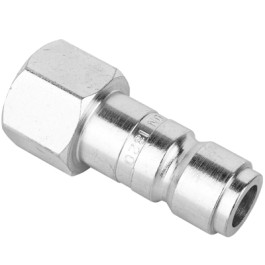 Milton G-Style (Tru-Flate / Parker Interchange Series - 1/2" Basic Size) Plug with 3/8" NPT female connection. G-Style plugs are case hardened steel plated to resist rust. Maximum inlet pressure of 300 PSI. Maximum temperature of 250° F. Air flow of 68 SCFM. Seals: Buna-N. For use with shop air only.
