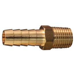 Milton Male Brass Hose Fitting with 3/8" Hose ID and 1/4" NPT.