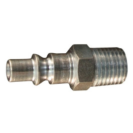 Milton A-Style (Aro "210" Series - 1/4" Basic Size) Plug with 1/4" NPT male connection. Plug is case hardened steel plated to resist rust. Maximum inlet pressure of 300 PSI. Maximum temperature of 250° F. Air Flow of 34 SCFM. Seals: Buna-N. For use with shop air only. Ascot Part #131-61528.