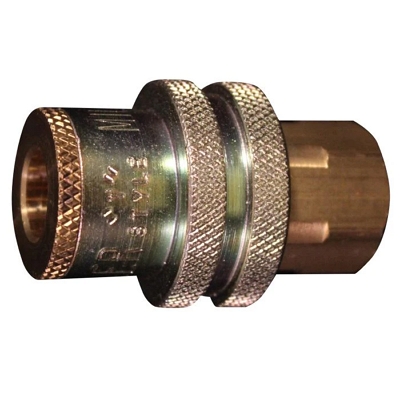 Milton T-Style (Tru-Flate / Parker Interchange Series - 1/4" Basic Size) Coupler with 1/4" NPT female connection and oversize sleeve ring. Coupler body is brass. Maximum inlet pressure of 300 PSI. Maximum temperature of 250° F. Air Flow of 40 SCFM. Seals: Buna-N. For use with shop air only. Ascot Part #134-61487.