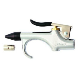 Milton Compact Safety Lever Blo-Gun with both a safety nozzle and rubber tip nozzle. Also features a hang-up hook for easy storage. Maximum working pressure of 150 PSI. SCFM 11.7 @ 100 PSI safety-tip. SCFM 12.9 at 100 PSI rubber tip. 1/4" NPT air inlet. OSHA compliant with safety tip only.