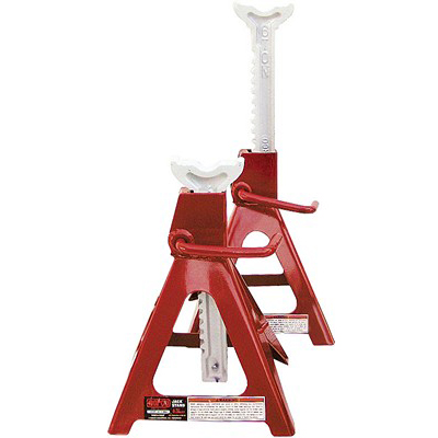 Norco 6 Ton Capacity Jack Stands (6 Tons Each Stand) for automotive use where vehicle is to be supported before making repairs. Features include a unique spring loaded pawl that provides constant locking pressure against lifting column and four legged base with foot pads for added strength and more secure footing on asphalt. Positive lock handle cannot be disengaged until load is off the saddle column. Lock handle can be used as a carrying handle. All stands are intended to be used in pairs. Low Height: 16.25". High Height: 24.875". Height Intervals: .625".