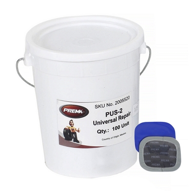 Prema Square Universal Bias/Radial Repairs / 1-3/4" Square, 100/Tub. Designed for repairing nailhole injuries in tubeless Bias and Radial tires in the crown area only. Ascot Part #550-00522.