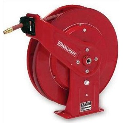 Reelcraft 3/8", 50' Heavy Duty Industrial Air / Water Reel. Features substantial support and an all steel construction with engineered ribs / forms. Baked-on powder coat finish provides corrosion resistance. Hose OD of .688 with 300 PSI. Ascot Part #125-07650.