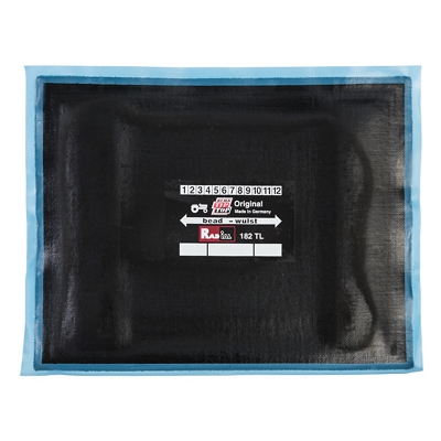 Rema Tip Top 10" x 7-1/2" Radial-Ply Repair Patch. Due to the fully-integrated blue bonding layer and center over injury design, Rema's Radial-Ply repair units are suitable for use with all current vulcanizing systems. 3 Ply. Packaged 5 patches per box. Ascot Part #575-00182.