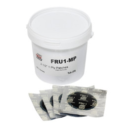 Rema 2-1/4" FRU Fabric Reinforced Universal Repair Unit will satisfy those technicians who require additional ply support within the patch body of the repair unit. This series of Universal Repair Units are round, non-directional units suitable for placement in the tread area of tires and can be safely used in both Bias and Radial constructed tires. These units utilize the same BL cement as all of Rema's blue-bonding system repair units. Should be used in conjunction with Rema RS Stem Units, or cavities filled with extruder rope and vulcanized. Packaged 25 per pail.