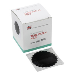 Rema Tip Top 2" Black Edge Round Vulcanizing Patches for virtually invisible tube repair. Packaged 30 patches per box.