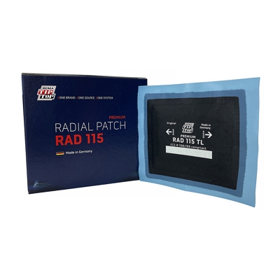 Rema Tip Top 3-1/2" x 2" x 3/4" Radial-Ply Repair Patch. Due to the fully-integrated blue bonding layer and center over injury design, Rema's Radial-Ply repair units are suitable for use with all current vulcanizing systems. 1 Ply. Packaged 20 patches per box. Ascot Part #575-00115.