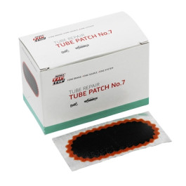 Rema Tip Top 3" x 1-1/2" Oval Tube Repair Vulcanizing Patches with the red feather edge are designed for repair of bicycle, garden, car, truck and tractor tubes. When installed with Rema's Cold Vulcanizing Fluid (Part #203), the patch will stretch evenly in all directions, resulting in a perfect bond and seamless repair. Packaged 30 patches per box. Ascot Part #541-00470.