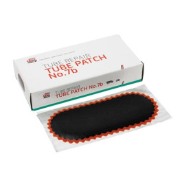 Rema Tip Top 6" x 2" Oval Tube Repair Vulcanizing Patches with the red feather edge are designed for repair of bicycle, garden, car, truck and tractor tubes. When installed with Rema's Cold Vulcanizing Fluid (Part #203), the patch will stretch evenly in all directions, resulting in a perfect bond and seamless repair. Packaged 10 patches per box. Ascot Part #541-00472.
