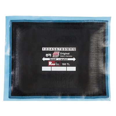 Rema Tip Top 7-3/4" x 6" Radial-Ply Repair Patch. Due to the fully-integrated blue bonding layer and center over injury design, Rema's Radial-Ply repair units are suitable for use with all current vulcanizing systems. 2 Ply. Packaged 5 patches per box. Ascot Part #575-00180.
