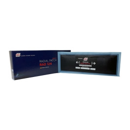 Rema Tip Top 8-1/2" x 3" Radial-Ply Repair Patch. Due to the fully-integrated blue bonding layer and center over injury design, Rema's Radial-Ply repair units are suitable for use with all current vulcanizing systems. 2 Ply. Packaged 10 patches per box. Ascot Part #575-00124.