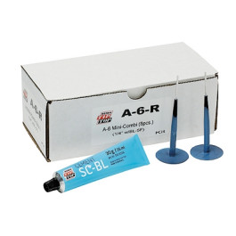 Rema Tip Top Minicombi Tire Repair Inserts Kit for tread damage up to 1/4" (6mm). Rema's most popular unit for crown repair of passenger / light truck tires. Kit includes 8 repair units and 1 tube of BL-5F Flammable Cement. Ascot Part #581-67308.