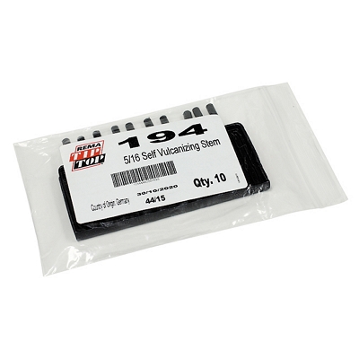 Rema Tip Top Pre-Cured, Self-Vulcanizing Stem Inserts for maximum 5/16" injury. Specially contoured for easy installation. Compatible for use in hot or cold vulcanization processes. Packaged 10 repairs per unit. Ascot Part #582-19410.