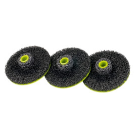 Ascot Replacement Discs (3/Pk) for #402-43357. Allows for the complete removal of burnt in corrosion. Used only on the inside of an aluminum wheel. 2-15/16" Center Disc Diameter. 6" Outside Diameter. Hex Shaft Arbor - to be used with drill.