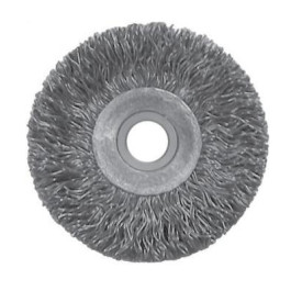Weiler 3" Diameter Crimped Wire Wheel with 1/2"-3/8" AH and a face width of 5/8". Wire size is .0118 and has a rpm rating of 20,000. Ascot Part #535-15563.