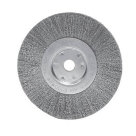 Weiler 6" Diameter Crimped Wire Wheel with 5/8"-1/2" AH and face width of 3/4". Wire size is .0118" and has a rpm rating of 6,000.