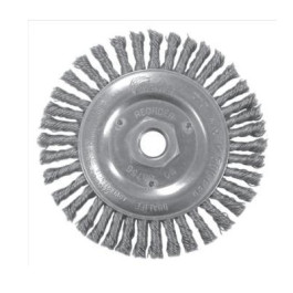Weiler 6" Diameter Stringer Bead Twist Wheel features a very narrow face width (3/16") for hard-to-reach areas. Used primarily for weld cleaning. Trim Length of 1-3/8" and a maximum rpm of 12,500. Primarily for light duty.