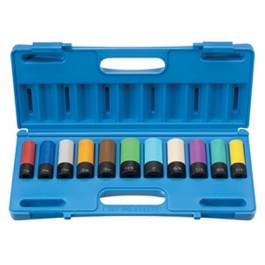 GP 1/2" Drive 11Pc. Extra Thin Wall Deep Wheel/Nut Protector Impact Socket Set / Set Contains: 3/4", 13/16", 7/8", 15/16", 1", 1-1/16", 17mm, 19mm, 21mm, 22mm and 23mm.