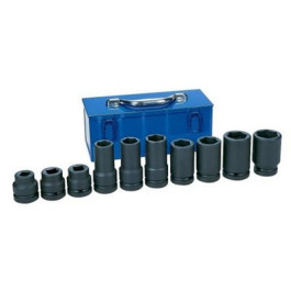 GP 1" Drive 10 Pc. SAE & Metric Truck Wheel Service Impact Socket Set / Set Contains: 13/16" Square, 17mm Square, 21mm Square, 1-1/16" Thin Wall Deep, 1-1/8" Thin Wall Deep, 1-1/4" Thin Wall Deep, 1-1/2" Deep Budd, 33mm Deep, 35mm Deep and 41mm Deep.