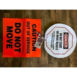 AME Lock-Out Tag-Out kit is used on vehicles while doing maintenance so nobody starts the vehicle or drives off while in the process of being repaired. Kit includes: 1 Tailgate Warning Flag, 1 "Do Not Start or Move Vehicle" 24" Cover, 1 Plastic Body Aluminum Padlock, and 1 "Do Not Operate Equipment" Flag.